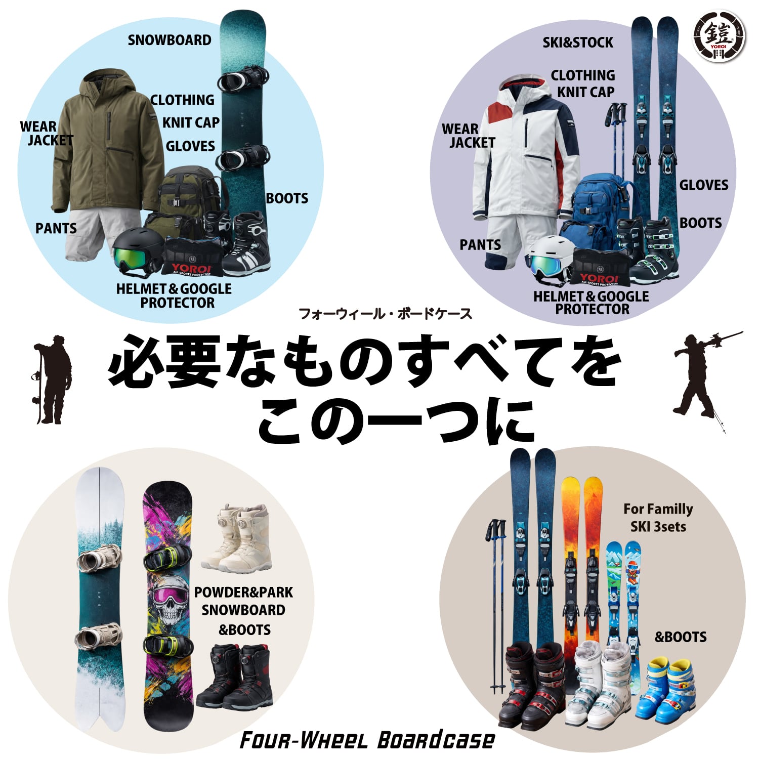 鎧 フォーウィールズボードケース 4つのコマ付きボードケース ヨロイ スノーボードケース スキー 収納 スキーケース YOROI FOURWHEEL BOARDCASE 最高級の収納バッグ 雪山宿泊 デイパックごと収納 LATE スノーボード先生