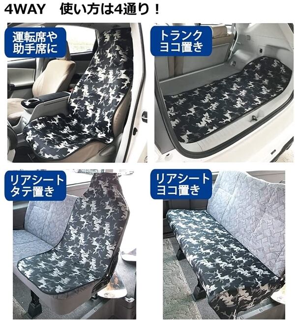 フロントシートに!(運転席&助手席に)・リアシートにタテに装着!・リアシートにヨコに装着!トランク横置きに装着!