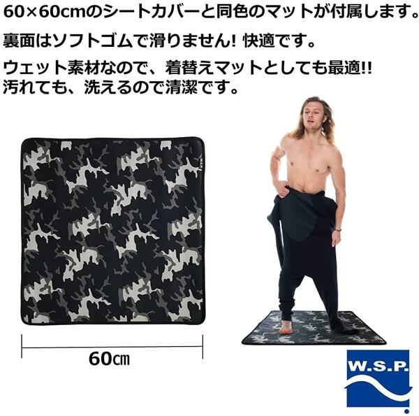 4WAYカーシートカバー マット付き グリーンカモ ウェット素材 アウトドアや雪山に