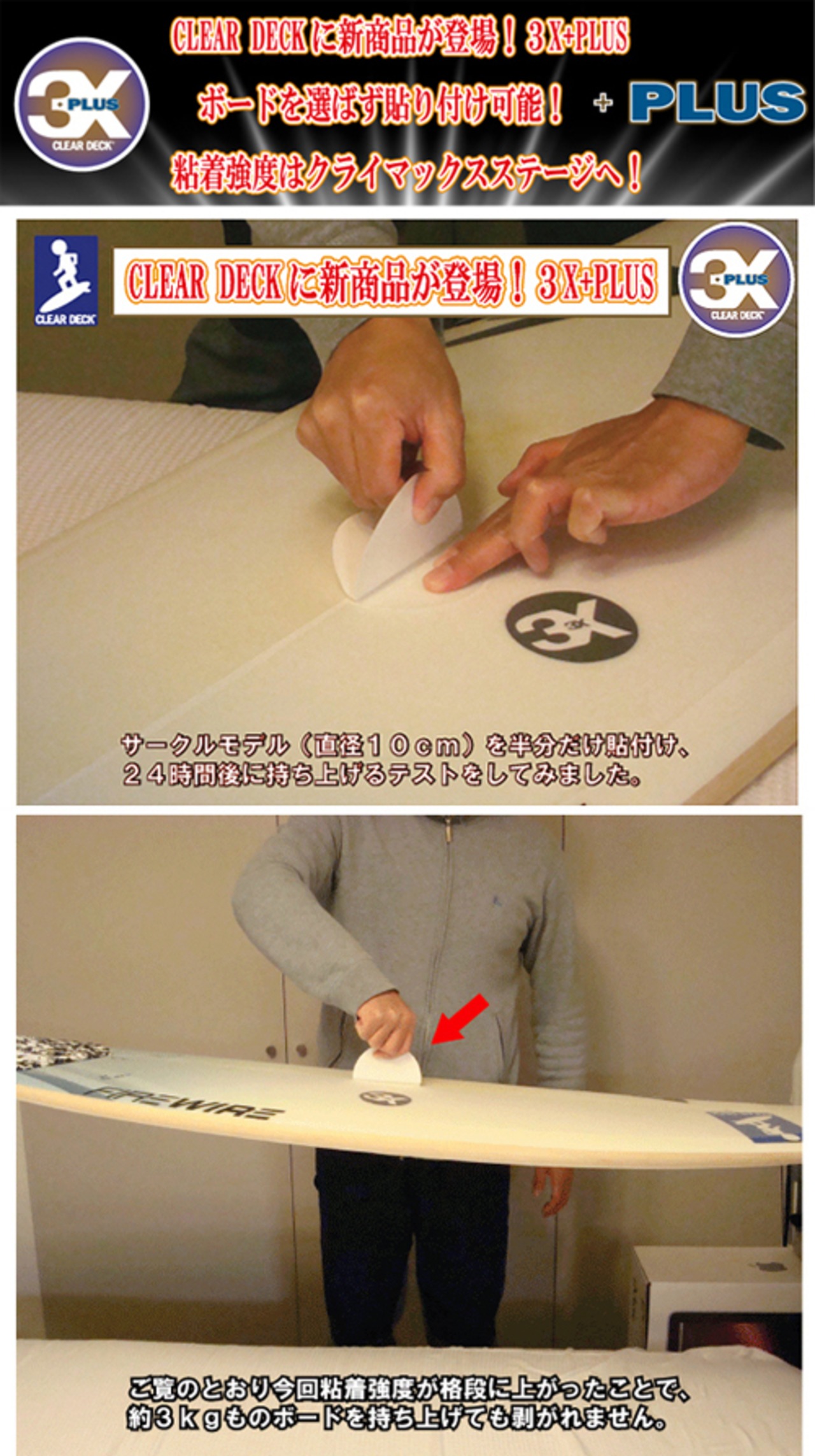 業界初のワックス不要でサーフィン革命をもたらしたクリアデッキです。