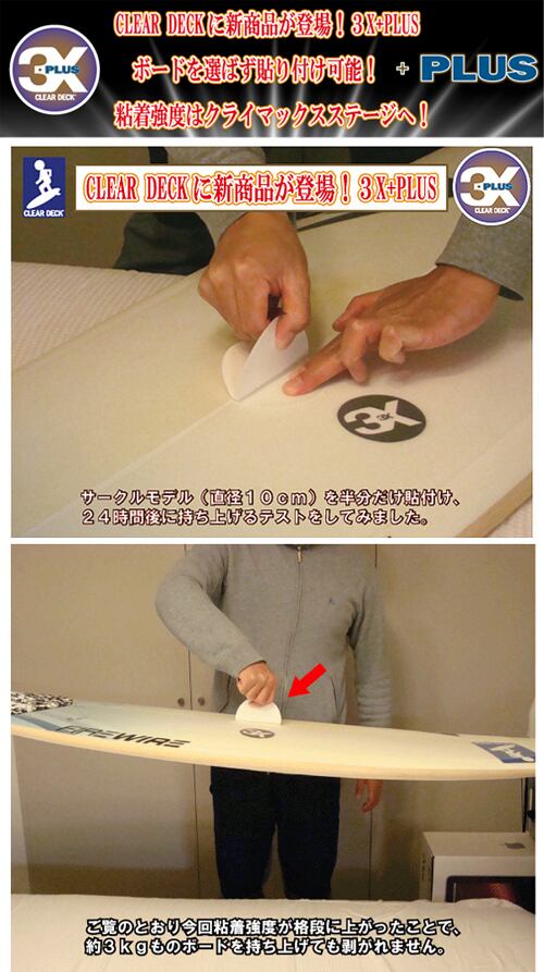 クリアデッキ 3X+PLUS SSB ショート用(大判など2枚入り)サーフボード用 滑り止めデッキテープ