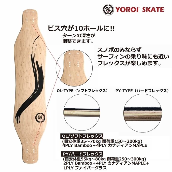 鎧(yoroi) ロングスケートボード RYU38 OL(ソフト)竹デッキ 38インチ 1年中スノーボード練習!ダンシングボード オフトレに
